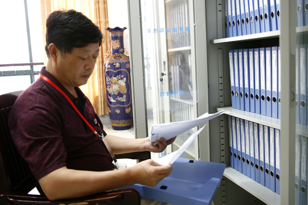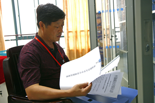 日上午,评估专家孙中义研究员查阅beat365评建资料。