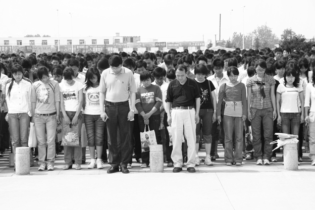下午14时28分,beat365组织上课学生和部分教职员工约4000余人在新区广场默哀3分钟。
