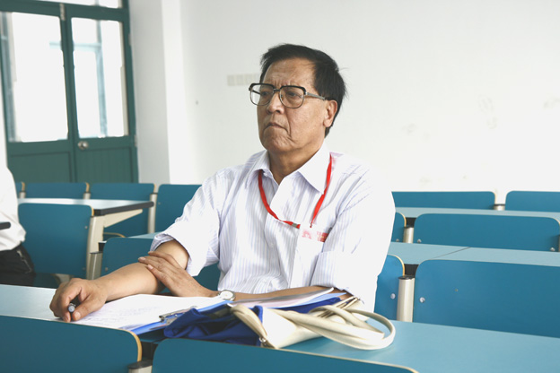 评估专家尹鸿钧教授在东教学楼508教室听课