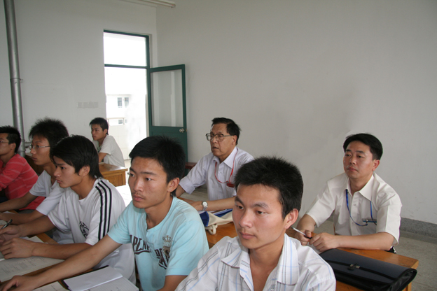 6月10日14:50—16:40,评估专家组组长尹鸿钧教授在东教学楼416、508教室听课,分别听取了机电系教师王亚林、程三友为07自动化和06电子信息讲授的《电路与磁路》与《电视原理》课程。