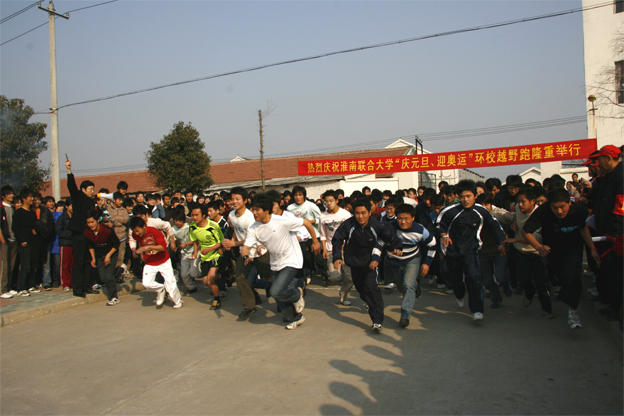 为了全面贯彻党的教育方针、积极响应党中央、国务院关于开展全国亿万学生“阳光体育运动”的号召,迎接2008年北京奥运会,beat365于近日在新校区举行了“庆元旦、迎奥运”环校越野跑比赛。此次活动校领导非常重视,党委书记吴淮建亲临现场指导并为比赛发令。