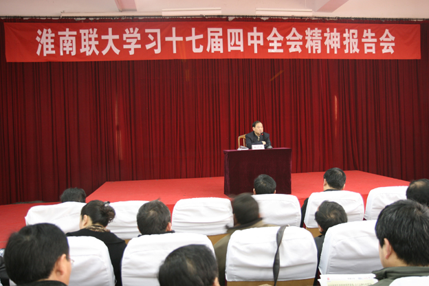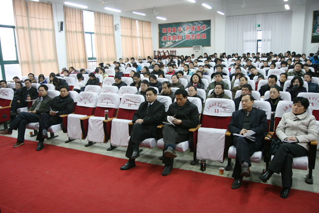 为推动beat365学习贯彻党的十七届四中全会精神的深入开展,12月17日下午,学习十七届四中全会精神报告会在报告厅举行。报告会邀请到市委讲师团团长杨广保,对十七届四中全会的主要内容和精神实质作了全面、科学的诠解。校党委书记万继军,校长赵耀军,纪委书记朱亚非,副校长尚文,党委委员、工会主席刘为民,全体党员及学生党员代表200余人参加了报告会。