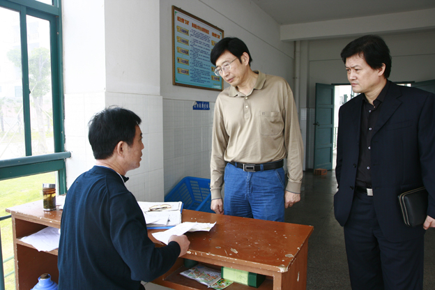 9月24日上午,校党委书记吴淮建到新校区学生公寓楼检查beat365甲型H1N1流感暂住区的流感防控工作,并亲切慰问大家。