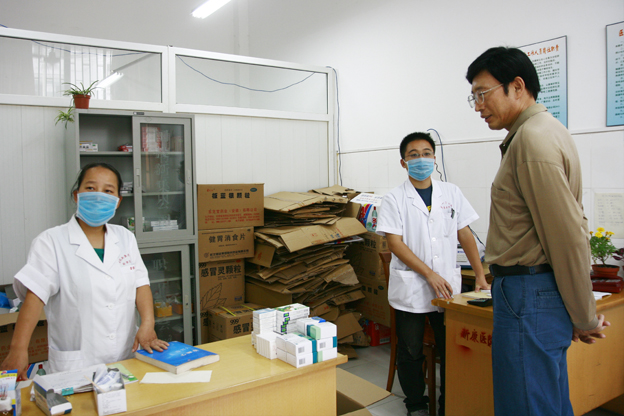 校党政办公室负责人陪同校领导一同查看了流感暂住区。