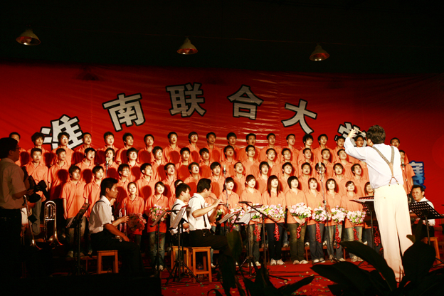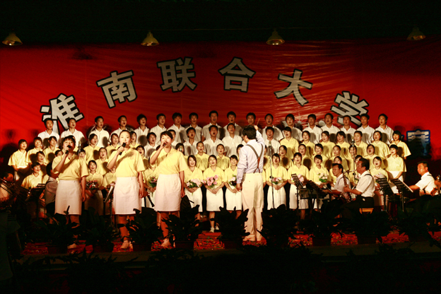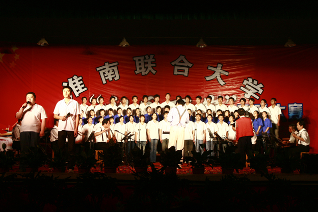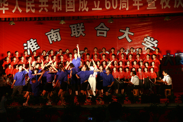 为庆祝中华人民共和国成立60周年暨建校25周年,6月9日,由校团委主办“祖国万岁”歌咏比赛在大学生活动中心成功举行。校党委书记吴淮建,党委副书记、校长赵耀军,纪委书记朱亚非,副校长耿梦淮,相关部门负责人出席并与师生观看了演出。各系书记担任此次大赛评委。