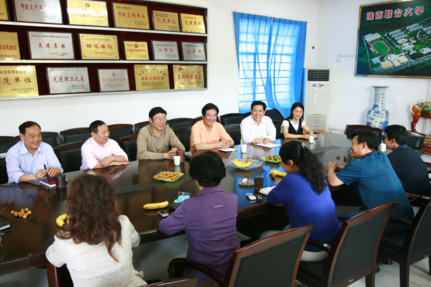 牛会长一行认真听取了学校工作情况介绍,高度赞誉淮南联大近年来在学校建设以及在内部审计工作方面取得的显著成绩,充分肯定了校领导高度重视内部审计工作的做法。他说“淮南联大内部审计工作之所以近几年来在省市内部审计行业连年创优,首先就离不开学校党政领导的重视与支持,希望内审部门的同志继续发扬优良的工作作风,戒骄戒躁,加强自身建设,不断提高专业胜任能力和职业道德水平”。