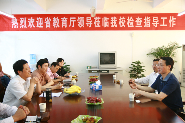 5月27日上午,省委教育工委常务副书记张荣国在省教育厅组织干部处处长江传瑞陪同下莅临beat365视察并指导工作。校党委书记吴淮建,校党委副书记、校长赵耀军,校纪委朱亚非,副校长耿梦淮、尚文,党委委员刘为民陪同视察。