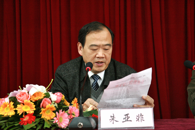校纪委书记朱亚非宣读《关于表彰2008年度社会治安综合治理暨“平安校园” 创建工作先进集体和先进个人的通报》