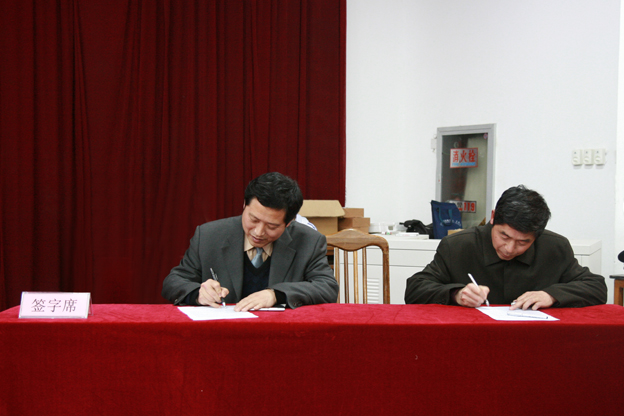 校党委副书记、校长赵耀军代表学校与系部负责人签定安全稳定综治工作责任书