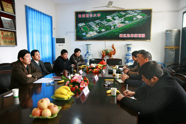3月26日上午,滁州职业技术学院党委副书记施向阳一行五人来beat365考察学习实践科学发展观试点活动情况。党委书记吴淮建,党委副书记、校长赵耀军出席,党政办、组织人事部、宣传统战部及督查室负责同志参加了交流活动。