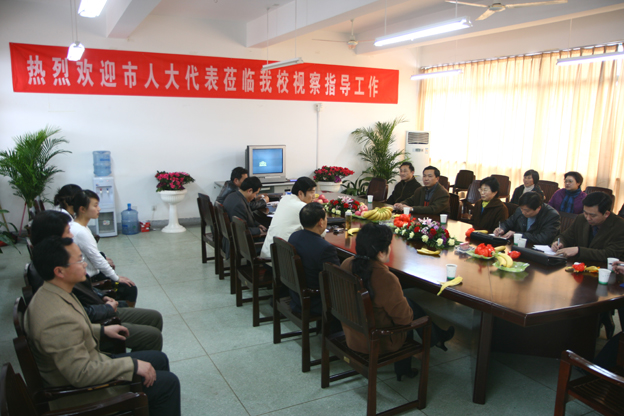 会上,校党委书记吴淮建首先代表学校领导班子和全体师生欢迎市人大代表团一行的到来。校长赵耀军向与会代表介绍了学校的基本概况、主要工作、存在困难等,并提请代表团一行帮助呼吁学校在基本建设、融资贷款、招生来源和政策倾斜等方面的困难和问题得到解决。