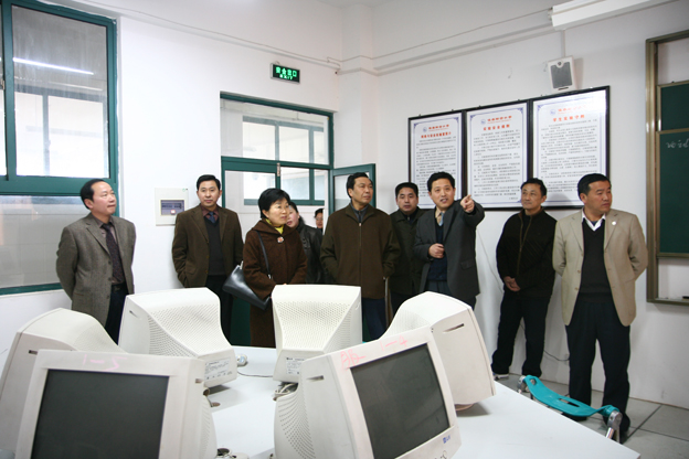 代表团一行在校领导班子的陪同下,实地查看了校网络中心、监控室、语音室、计算机实验室、图书馆、食堂、运动场、学生宿舍和实训中心等基础设施。