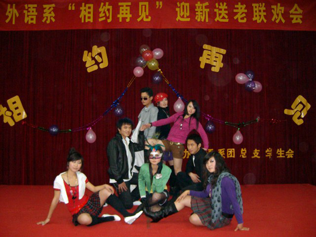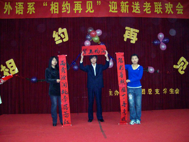12月11日晚6点,外语系“相约再见”迎新送老文艺晚会在报告厅拉开了帷幕。奋进学校校长一行,宣传部、团委负责同志,系书记、辅导员、班主任及各系团总支学生会、社团代表观看了演出。