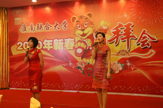 团拜会在16:00正式开始,校长赵耀军主持团拜会,校党委书记万继军在会上致新春贺辞。