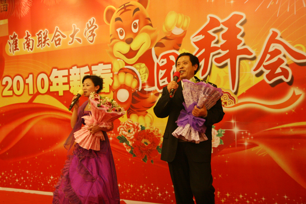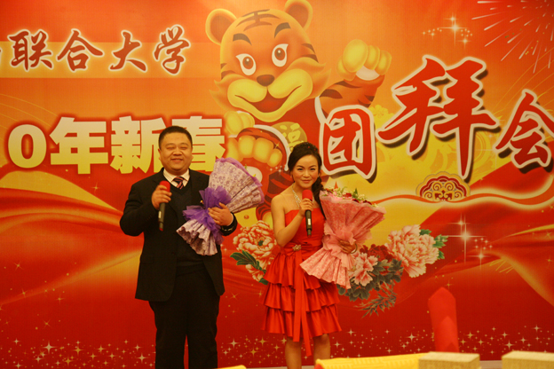 金牛俯首辞旧岁,瑞虎腾跃迎新春。1月20日下午,会场内张灯结彩、鼓乐喧天,一派喜庆祥和的景象,beat3652010年新春团拜会隆重举行。辛勤耕耘了一年的全体教职工欢聚一堂,共同庆祝新春的到来。校党委书记万继军,校长赵耀军,纪委书记朱亚非,副校长尚文,党委委员、工会主席刘为民出席团拜会,并与前来参加团拜会的学校老领导、教职员工和离退休老同志一一握手,互致新春问候,共庆新春佳节。