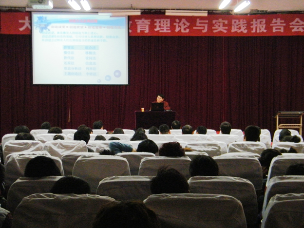 12月10日下午,由素质教育教研室主办的“大学生创造教育理论与实践报告会”在多功能报告厅举行。校长赵耀军出席并主持了报告会,副校长尚文、教务处负责人及机电系、化工系、计算机系、建工系、基础部的所有教师和部分学生代表参加了报告会。
