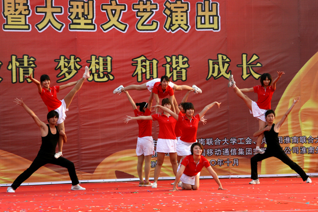 青春活力的健美操为开幕式文艺演出揭开了序幕。优雅飘逸的舞姿、悦耳动听的歌声、动情激昂的朗诵、活力四射的街舞展现了联大学子青春时尚的一面,文艺演出掀起了一个又一个高潮。整场开幕式在一曲悠扬的《我和我的祖国》中圆满结束。