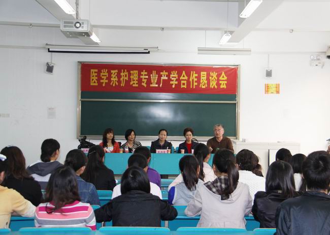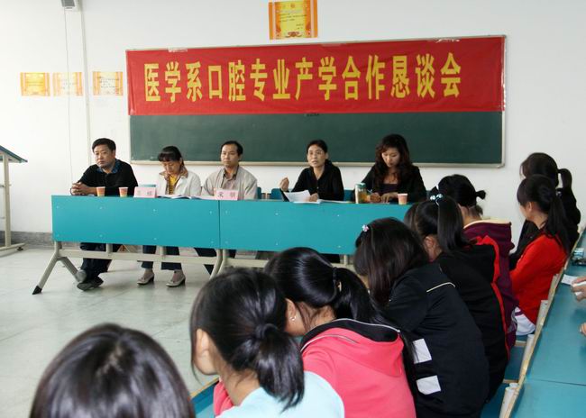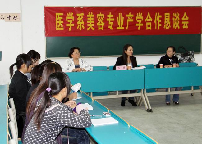 借beat365召开校企合作联谊会的东风,日前医学系在东教学楼2楼分别举办了护理专业、口腔医学技术专业及医疗美容技术专业产学合作恳谈会。淮南市第一人民医院、朝阳医院、东方集团医院、新华医院、新康医院、济民医院等护理、口腔及花之友美容连锁中心专家们、各教研室老师及部分学生代表参加了会议。医学系领导分别主持各专业恳谈会。