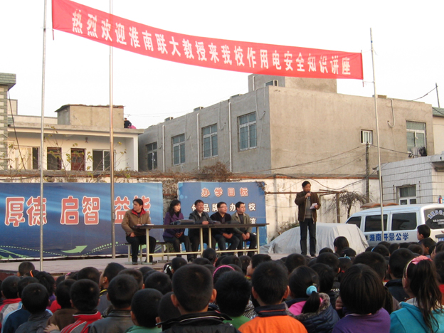 在活动中,机电系共产党员、支委徐梅老师首先为开景公学的全体师生作了一场用电安全的科普知识讲座。徐梅老师在介绍了电给我们生活带来的各种便利,以及在生产生活中的重要作用之后,着重从家庭和学校两个方面介绍了各种安全用电常识。整个讲座深入浅出,受到了开景公学师生的一致好评。