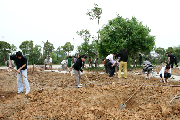 校园绿化、美化活动得到了校领导的高度重视,赵耀军校长身先士卒,亲自带领教职工投入到系列活动当中。广大同学们充分利用课余时间平土地、铺草坪,为营造绿色美丽校园贡献自己的一份力量。