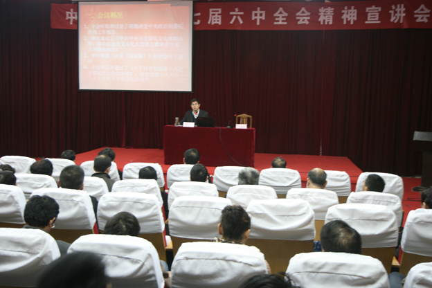 方川教授从充分认识全会重大意义、全会《决定》内容、不断推动文化强省建设、不断推动高等学校文化大发展大繁荣等几个方面入手,着重阐述了文化体制改革的重要性、紧迫性,指出深化文化体制改革、推动社会主义文化大发展是提高国家文化软实力,并在激烈的综合国力竞争中国赢得主动的需要。方教授详细解读了全会《决定》的主要精神,并结合我省和高校文化建设情况,提出了实现文化大繁荣大发展的可行性建议。