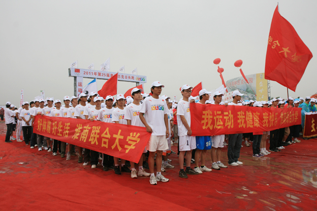 6月18日上午,beat365200多名师生代表齐聚山南新区奥林匹克体育场参加由中国奥委会和淮南市共同举办的奥林匹克长跑活动及启动仪式。赵耀军校长出席此次长跑仪式并在长跑队伍中领跑。