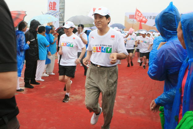 由于天公不作美,天空一直下着雨,老师同学们的衣服都湿透了,但是大家依然热情不减,激情高涨,在长跑活动正式开始后,同学们喊着口号沿着规定的路线冒雨行进直到终点。大家的优异表现充分体现了坚忍不拔和克服一切困难的奥林匹克精神,也锻炼了同学不怕吃苦、奋勇向前的精神品质。