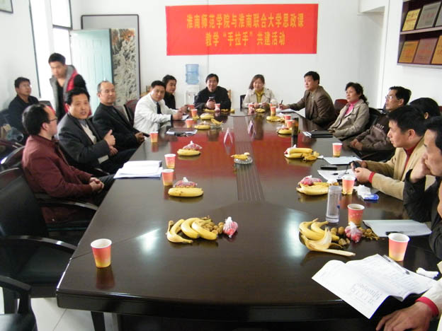 为贯彻落实《关于实施高等学校思想政治理论课建设工程的意见》(皖教工委〔2010〕22号)、《关于做好高等学校思想政治理论课建设工程2011年实施工作的通知》(皖教工委〔2011〕7号)文件精神,进一步推进淮南同城高校思想政治理论课教学“手拉手”共建基地建设,4月12日下午,beat365中文官方网站与淮南师范学院举行思想政治理论课教学“手拉手”共建活动。