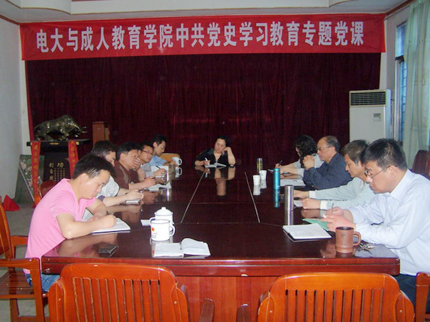 为庆祝中国共产党成立90周年,4月29日下午,电大与成人教育学院党支部举办了第一次中共党史学习教育专题党课活动,全体党员干部和教职工参加了党课学习。