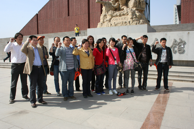 踏上沂蒙故土,首先赴孟良崮战役纪念馆参观,共同缅怀革命先烈。讲解员生动的讲解,详细的文字、图片资料、丰富的革命文物和观看立体电影记录片,使大家详实感受了举世闻名的孟良崮战役的全过程。岁月如梭,转眼60余年过去了。当年的硝烟已经散尽,纷飞的弹雨已化为泥土,山上如刀似剑的丰碑,见证了沧桑的历史。怀着对先烈的崇敬之情,大家在孟良崮战役纪念雕塑前又一次重温了入党誓词。