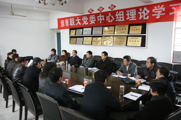 3月18日上午,校党委中心组理论学习在办公楼一楼举行。校党委书记万继军主持,校长赵耀军、校党委副书记朱亚非、副校长尚文参加,各党总支书记及部分部门负责同志列席。