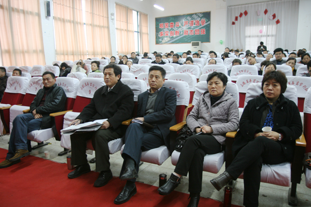 党委书记万继军同志主持报告会,校长赵耀军、副校长尚文、纪委书记白玫、党委委员组织人事部长白存良及全校近三百名教职工参加学习。