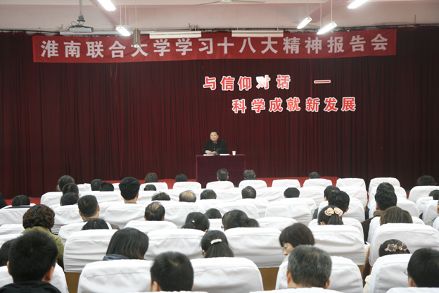 杨广保同志首先总结了近十年特别是党的十七大以来党和国际事业取得的伟大成就,然后结合当前面临的国内国际形势,详细的解读了十八大“高举中国特色社会主义伟大旗帜,以邓小平理论、“三个代表”重要思想、科学发展观为指导,解放思想,改革开放,凝聚力量,攻坚克难,坚定不移沿着中国特色社会主义道路前进,为全面建成小康社会而奋斗”的主题思想。指出党的十八大是一次承前启后、继往开来的大会,在全面实现小康社会和中华民族复兴的伟大征程中具有重要的历史意义。