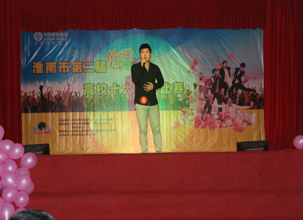 10月23日下午,淮南联大校园歌手大赛暨“淮南市第二届动感地带杯高校十佳歌手”复赛在大学生舞台隆重举行。校党委书记万继军,校长赵耀军,副书记朱亚非,副校长尚文,纪委书记白玫,党委委员、组织人事部部长白存良,以及淮南广电局党委书记、台长吴新华等领导出席了大赛,共有十位选手参加了此次复赛角逐。