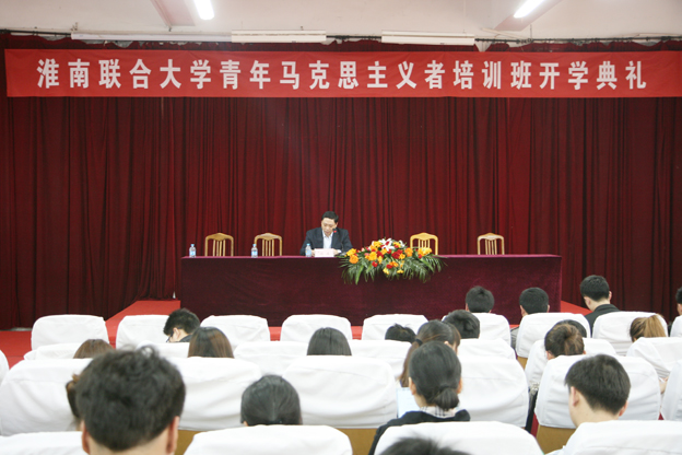 开班仪式上,校学生会主席首先作为学生代表发言,并代表学生骨干表明了坚持学习马克思主义的决心。团市委杨书记作了重要讲话,他指出,作为马克思主义的学习者,应该怀有全球眼光,从历史的角度分析当前形势,认清社会现象的实质。朱书记向学员们发出倡议,倡议同学们探索、研究、践行马克思主义的先锋,为争做优秀的社会主义事业接班人而努力奋斗。开班仪式后,团市委组织部部长张波以“做一名坚定的青年马克思主义者”为主题为学员们上了生动的一课。
