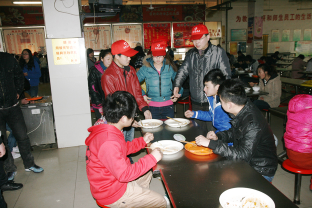 3月19日,由团委学生会和爱心社组成的文明就餐志愿服务小分队在学生就餐高峰期分别在食堂一楼、二楼引导同学们有序排队取餐、餐后将餐具送到会收处。此举得到了大家的积极响应。