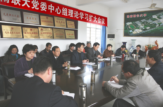 纪委书记白玫传达了安徽省教育系统党风廉政建设工作会议精神,希望各部门要认真学习并贯彻会议精神,以申报廉政文化进校园示范点为契机,扎实做好反腐倡廉工作。朱亚非副书记与到会人员共同学习了中共安徽省委教育工作委员会关于《高校思想政治工作要点》文件精神,他要求各部门、各系部要以《工作要点》的各项任务安排为内容,创新高校思想政治工作方法,卓有成效地开展好淮南联大思想政治工作。