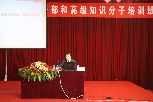 亓院长以《坚持内涵发展战略,打造高职教育品牌》为题,从高等教育发展的现状及机遇、高职人才培养定位、高等职业院校的内涵建设等几个方面方面阐释了怎样打造高职教育品牌,提高师资队伍的总体素质。