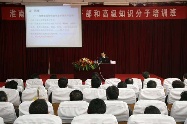 3月30日下午,应beat365邀请,安徽机电职业技术学院亓四华院长为beat365管理干部和高级知识分子培训班作报告,校领导班子成员到场聆听了报告。