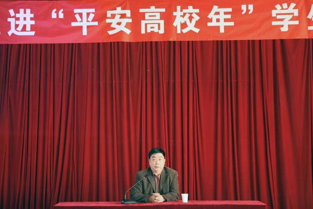 龚支队在讲座中首先强调,构建和谐稳定的社会环境,高校至关重要。我们必须通过各种努力确保高校大学生的思想稳定、生活稳定,确保大学校园安全和谐。他指出,参加讲座的各位学生干部是连接各位同学与学校沟通的桥梁,是高校维稳的重要力量。他希望各位学生干部在发现针对食堂伙食、宿舍用电不满,对时事产生过激情绪,网络、短信不良信息在同学中传播等容易诱发群体事件的情况出现时,要积极予向辅导员和系部传达信息,以防止事态发展。同时还要防范省内外、国内外一些披着宗教外衣的邪教组织在同学中渗透。并希望学校和相关部门加强大学生安全防范教育,提高防范意识,增强安防能力,尽量避免大学生交通事故、人生财产安全事故。讲座中,龚支队结合自己多年的办案经验和真实的案例为广大学生干部上了一堂生动安全、维稳教育课。