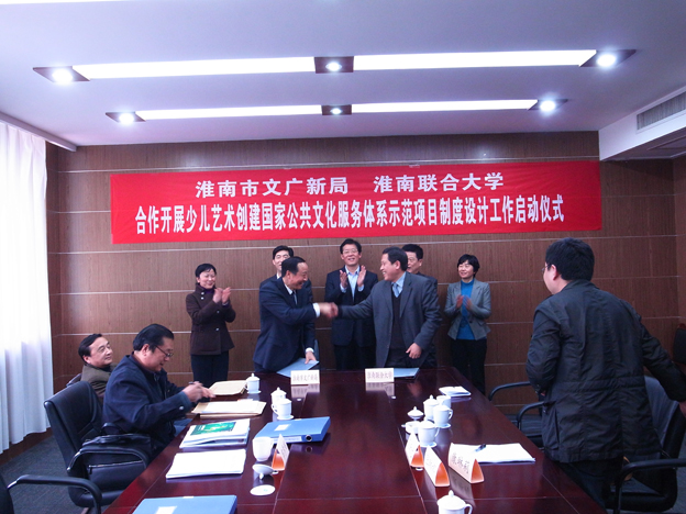 近日,赵耀军校长和孙献光局长分别代表beat365中文官方网站和淮南市文广新局签订合作协议,创建国家公共文化服务体系示范项目—淮南少儿艺术发展项目制度设计工作正式落户beat365。