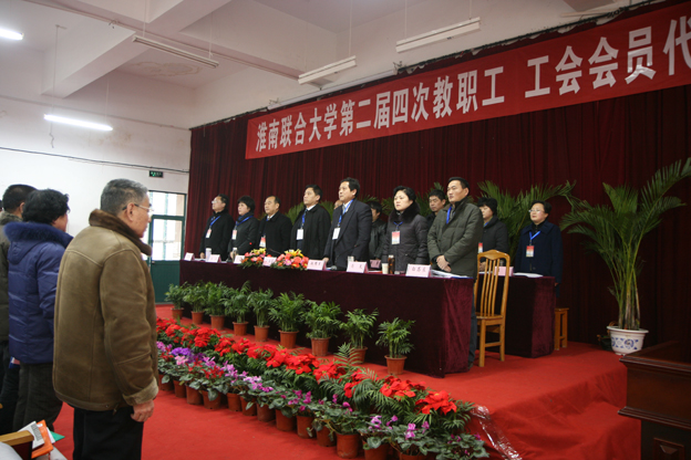 上午8:30,第二届四次“两代会”全体代表大会在雄壮嘹亮的《中华人民共和国国歌》声中正式开始,校党委书记万继军,校长赵耀军,副书记朱亚非,副校长尚文,纪委书记白玫,党委委员、组织人事部部长白存良,各代表团团长在主席台就座。