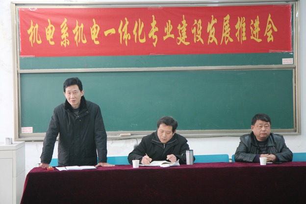 会上机电系教学负责人着重介绍了国家教育部加大对高职院校的先进项目资金扶持力度,并阐述了机电一体化专业项目的申报情况以及接下来系部对“机电一体化”项目的实施方案、项目资金的划分等相关事宜。他希望要大家团结协作,发扬团队精神把项目做好。