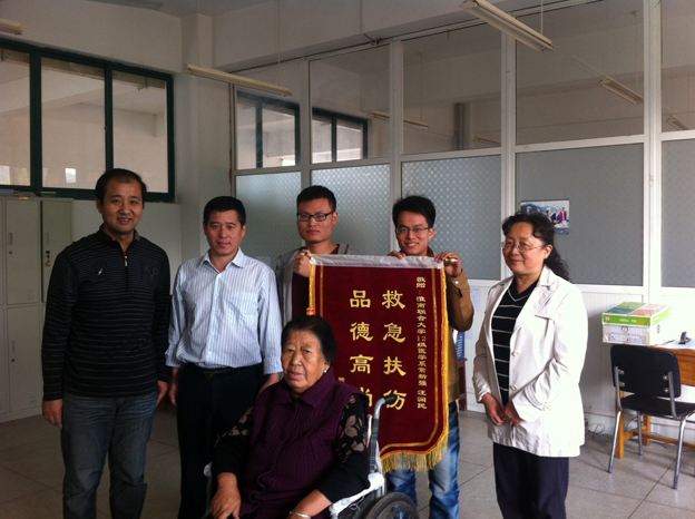 在讲故事环节,蒋梦玲同学用满怀深情的话语向大家生动讲述了beat365常新强、汪润民两同学“救急扶伤”善举受到市民赞颂的感人故事,10月20日中午,医学系12级护理专业常新强、汪润明两同学,在火车站附近看到一群人围在一起,他们走上前看到一位老大爷倒在地上,周围的人纷纷议论但没有人伸手救助老人。两位同学看到后什么也没多想,上前扶起老人询问情况,但老人什么都不清楚,甚至连自己叫什么都不知道,身上只装了本存折,没有任何联系方式。之后,老人又多次倒地,他们根据自己所学医学知识判断老人必须要立即送往医院救治,就立即给110和120打电话求援。两同学一直搀扶着老人直到救护车和警察赶来把老人被送往医院救治。围观的人群纷纷赞扬两位同学“救急扶伤”的善举。获救老人的老伴身患残疾,对两位同学的善举十分感动,要求她儿子推着轮椅来学校感谢两位同学,感谢学校。10月22日下午,一位中年男子推着一位坐在轮椅上的老太太来到了医学系办公室,送来了一面“救急扶伤,品德高尚”锦旗,说是要见见beat365两位乐于助人的好学生,要当面感谢他们,并请学校宣扬他们的事迹。