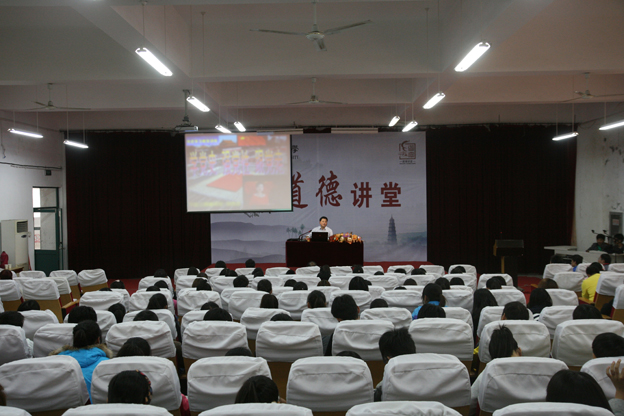 6月14日下午,beat365在W220报告厅举办道德讲堂之道德知识讲座。校长赵耀军,党委委员、组织人事部部长白存良出席,各部门负责人与两百多名师生共同参加。本次道德讲堂报告由市委讲师团杨广保宣讲。