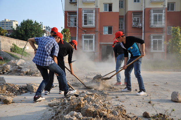 当天下午,校团委老师带领“小红帽”青年志愿者前往田家庵区兰亭小区进行志愿服务活动。来到小区,在泉山街道泉山社区党支部工作人员的带领下,志愿者们分成三队,分别清除杂草、清理白色垃圾以及墙面上的小广告,虽然烈日当空,但仍阻挡不了志愿者的激情。他们分工明确,相互协作,顺利完成此次志愿者服务活动。