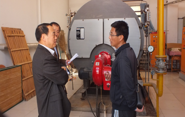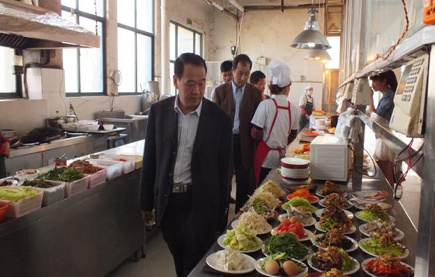 随后检查组深入学生公寓,查看了试宿舍消防设施、器材的完好性,消防通道是否畅通以及公寓日常管理情况。在对学生食堂检查中,朱书记一行深入食堂操作间、储藏室,详细察看和询问原材料清洗、食品制作、餐具消毒等环节的具体情况,仔细查看了储藏室食品原材料的保质期,确保食品原材料采购渠道规范、储藏卫生、餐具消毒到位。同时又对锅炉房、配电房进行实地检查。他要求后勤保障处的同志一定要做好消防安全、食品安全的日常检查和监督工作,杜绝安全隐患。