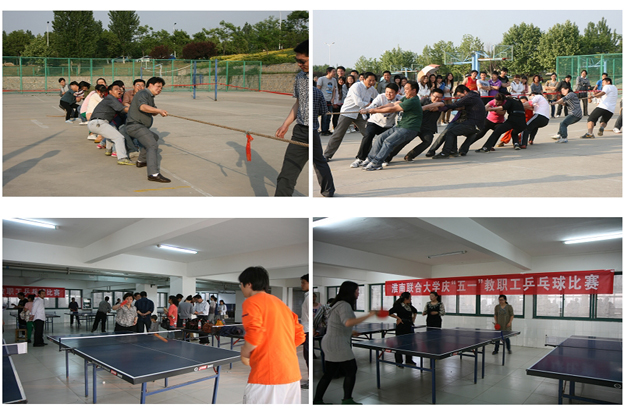 5月3日下午,校工会在篮球场和体育活动中心举办了“庆五一”教职工拔河和乒乓球比赛,以健康快乐的竞赛方式庆祝“五一”国际劳动节。校党委书记万继军,校长赵耀军,党委副书记朱亚非,纪委书记白玫,党委委员、组织人事部部长白存良亲临现场参加比赛,并为选手们加油鼓劲。此次活动共有11支参赛队近两百名教职工参加了拔河与乒乓球比赛。