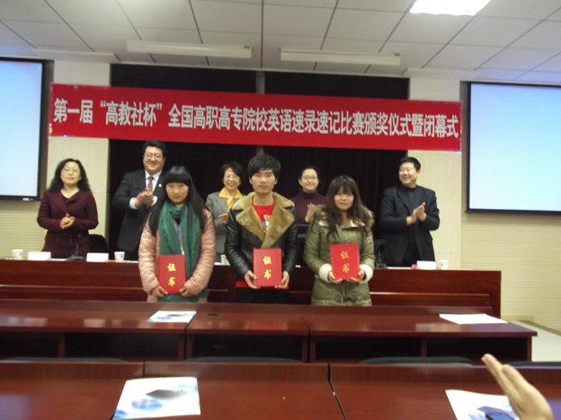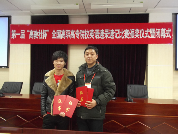 2013年1月18日至20日,在高等教育出版社主办的第一届“高教社杯”全国高职高专院校英语速录速记比赛中,我系2012级应用英语专业白露露同学以其出色的表现,荣获了比赛二等奖和听译部分最佳单项奖的优异成绩!