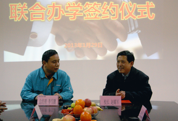 李雪鹏总经理首先致辞并介绍公司的经营情况和发展前景,企业对人才的需求情况。希望在以后的联合办学过程中,切实履行职业教育的思想理念,发挥高校办学优势,着力于培养学生独立的思考能力和独立人格,强化学生技能训练和增强学生对社会的适应能力。充分发挥双方各自优势,共同培养企业需要的人才,